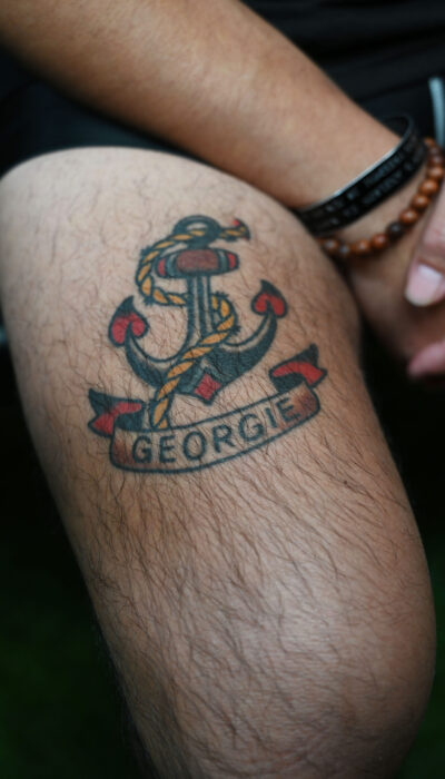 An anchor with his father’s nickname, “Georgie,” who was also a sailor