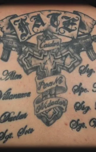 He has three military tattoos: